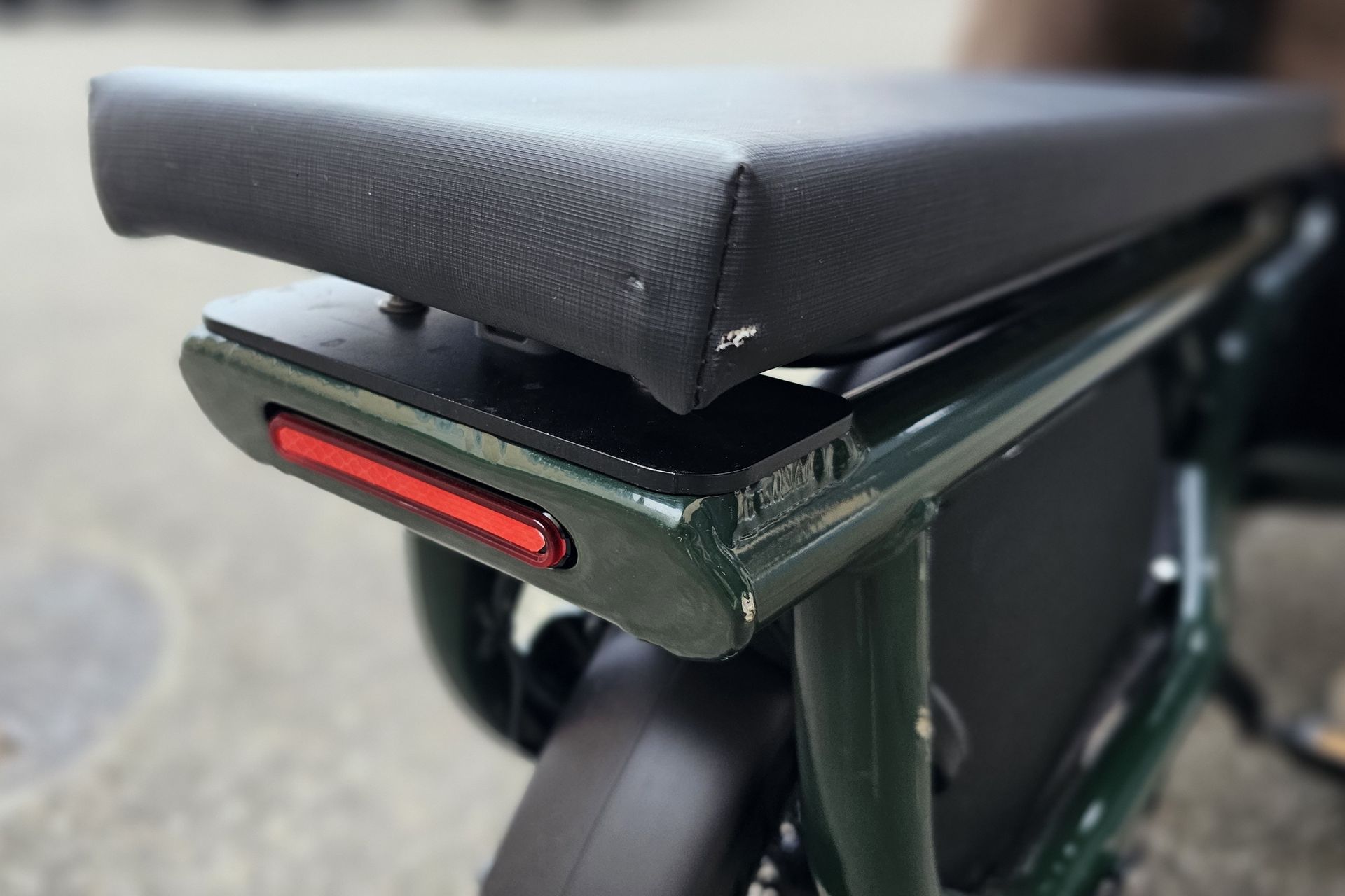 Mais ce qui rend le Formidable unique, c’est aussi son espace avant multifonction. Doté de portières en ABS fabriquées en France, l’habitacle offre deux assises sécurisées avec ceintures cinq points pour les enfants. En grandissant, ils pourront s’installer sur la partie longtail arrière, rendant ce vélo évolutif et familial.